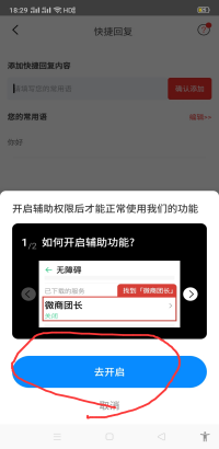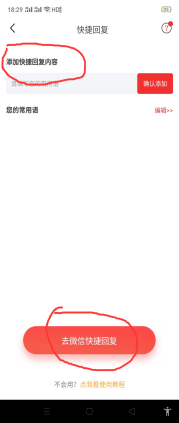 然后到此界面可以添加快捷回复内容,然后点击“去微信快捷回复”。如下图: